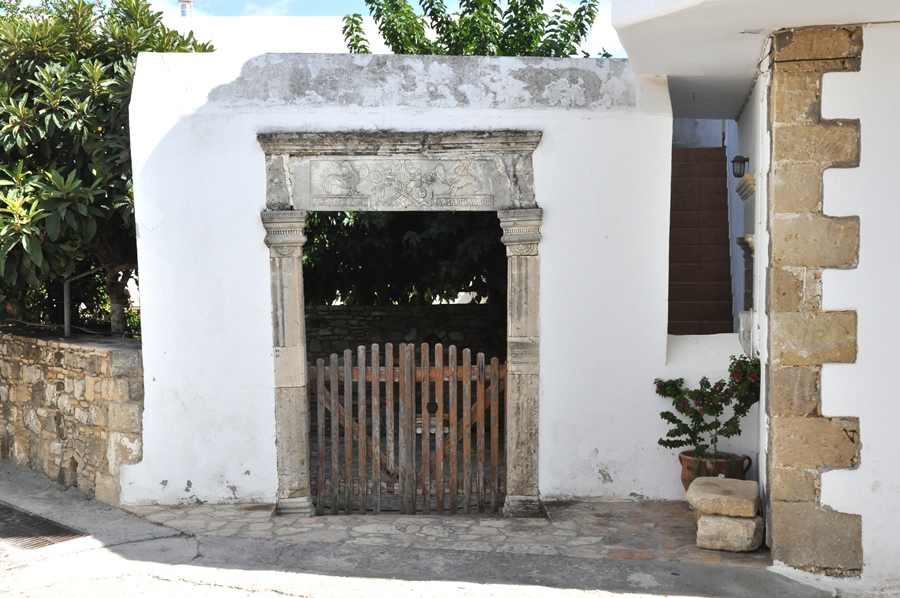 Prise à Vori, au Sud de la Crète. Il s’agit là d’une remarquable illustration de l’art d’accommoder les restes. C’est en effet un intéressant syncrétisme entre un noble porche vénitien du XVIIIè siècle et une vulgaire ouverture de barrière de jardin bien défraîchie. Le contraste n’a visiblement pas effrayé le ou la propriétaire des lieux…